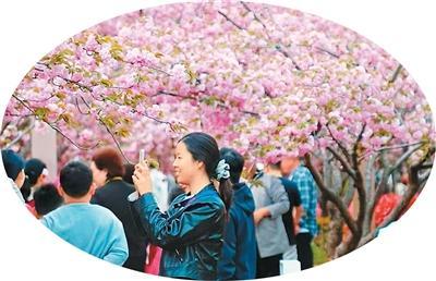 游客在鹤壁樱花园赏花。吴 敏摄